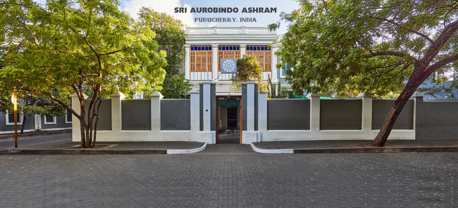 The Ashram is located in the eastern part of Puducherry. Ashramites live and work in a large number of building spread throughout the area. The focus of community life is the Ashram main building, usually called simply "the Ashram", which consists of an interconnected block of houses, including those in which Sri Aurobindo and the Mother dwelt for most of their lives. at its centre in a tree-shaded courtyard lies the Samadhi, a white-marble shrine where their bodies are laid to rest.